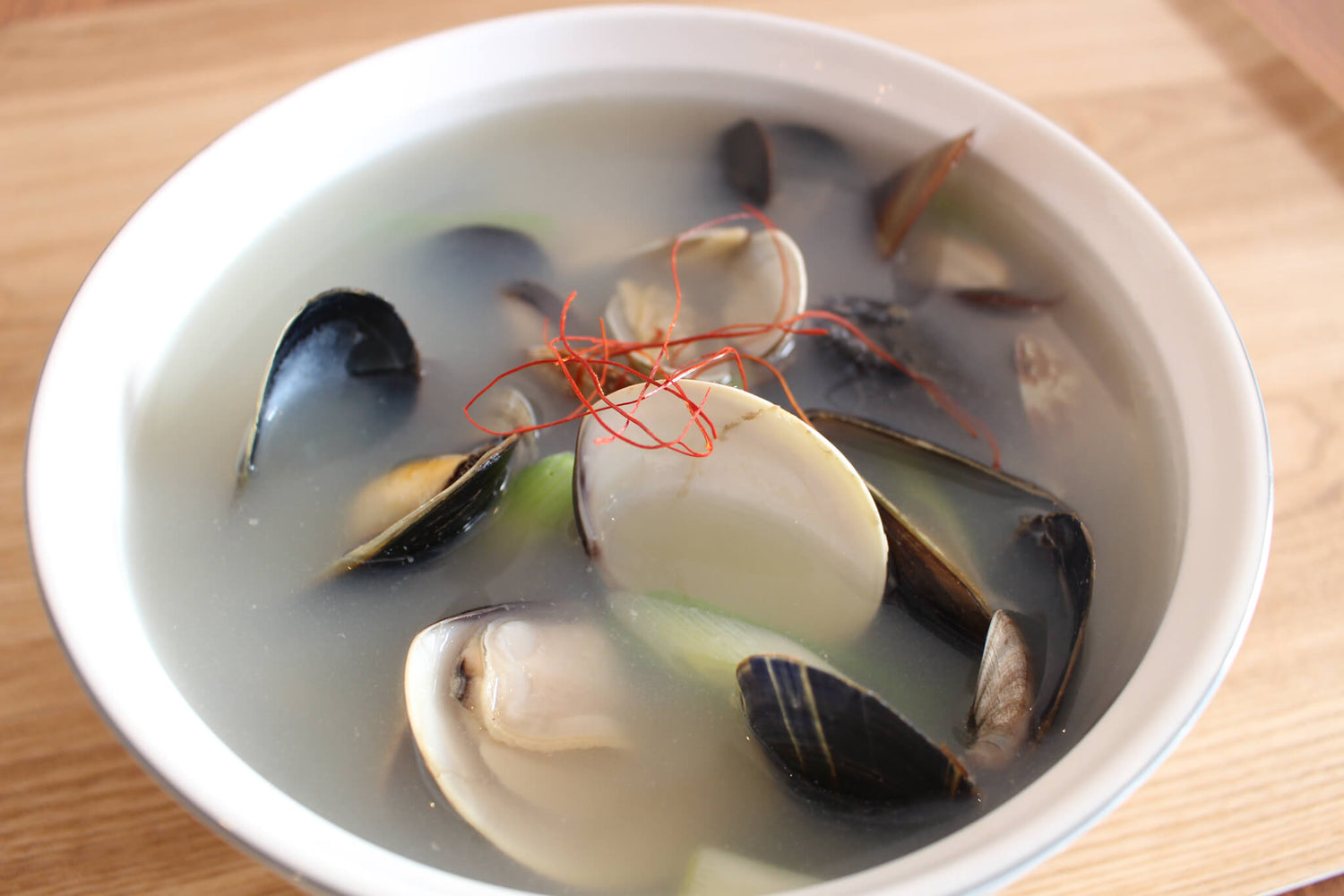 あさりなど3種類の貝を使ったスープ。韓国の風味を感じる事の出来る、やさしいスープです。