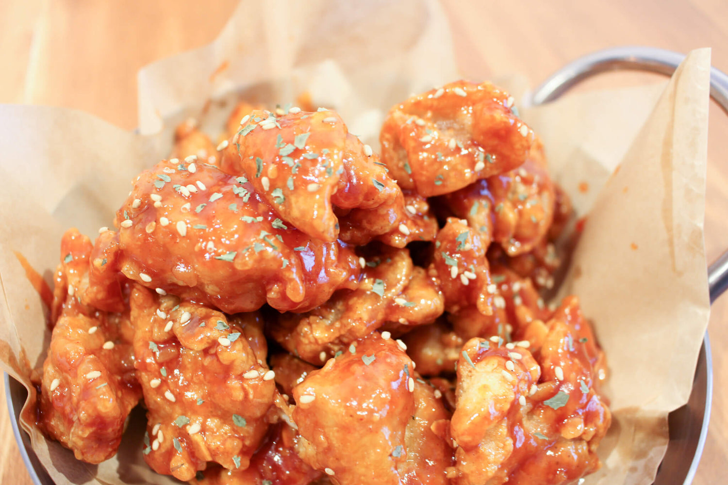 辛さの中にも甘味が生きる甘辛チキンは特に人気のメニューです。特製のタレは辛くて甘い、独特の味でビールに合う一品!