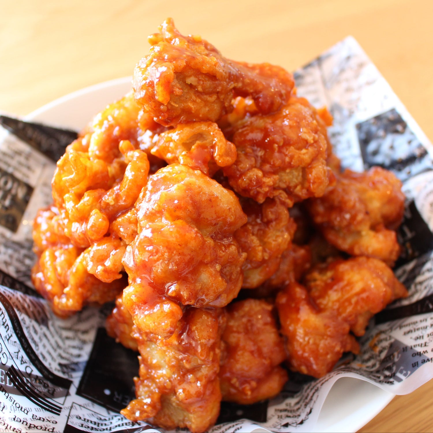 ヤンニョムチキン/鶏肉(ブラジル産)、小麦粉、コチュジャン、はちみつ、みりん、ケチャップ、にんにく、シナモン、ごま、塩(一部に小麦・ゴマ・卵・乳成分・鶏肉を含む)